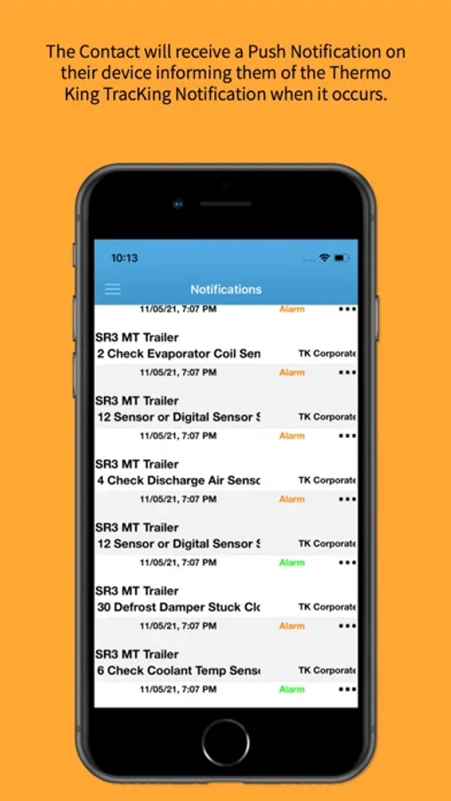 The Contact will receive a Push Notification on their device informing them of the Thermo King TracKing Notification when it occurs.