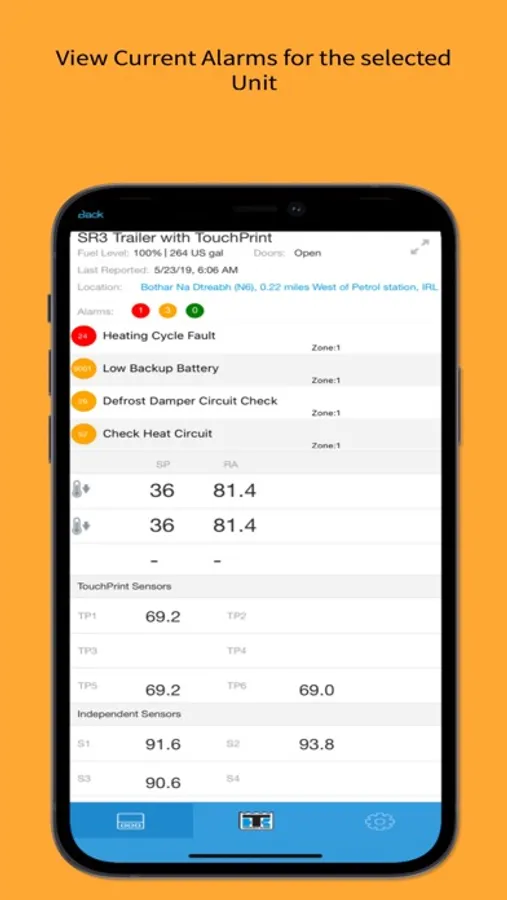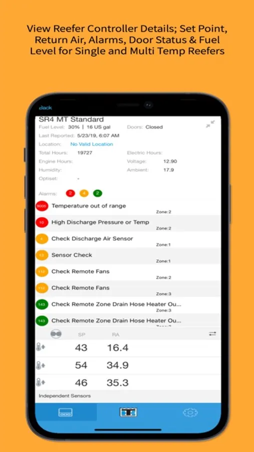 * View Reefer Controller Details; Set Point, Return Air, Alarms, Door Status & Fuel Level for Single and Multi Temp Reefers
