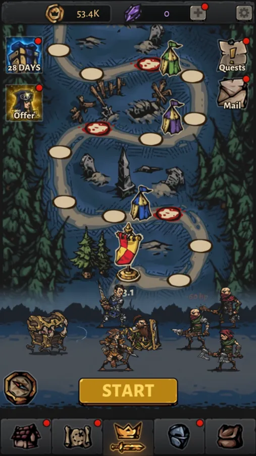 Various heroes! Knights, Paladins, Archers and Mages are ready to set off on an adventure full of dangers and, of course, awesome loot!