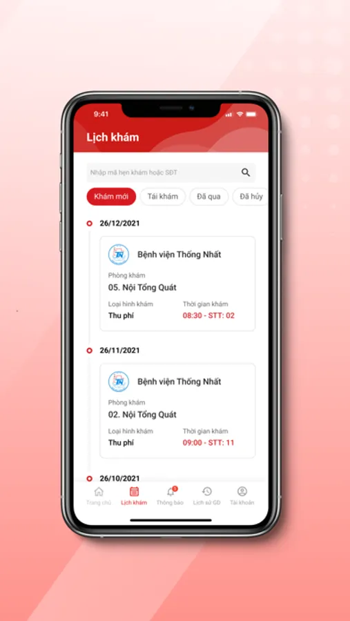 - Quản lý lịch khám, lịch tái khám.