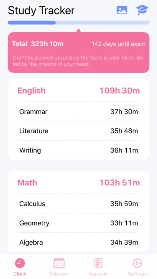 Customize courses and study plans. Various types of clocks such as Pomodoro and countdown can help you study efficiently.
