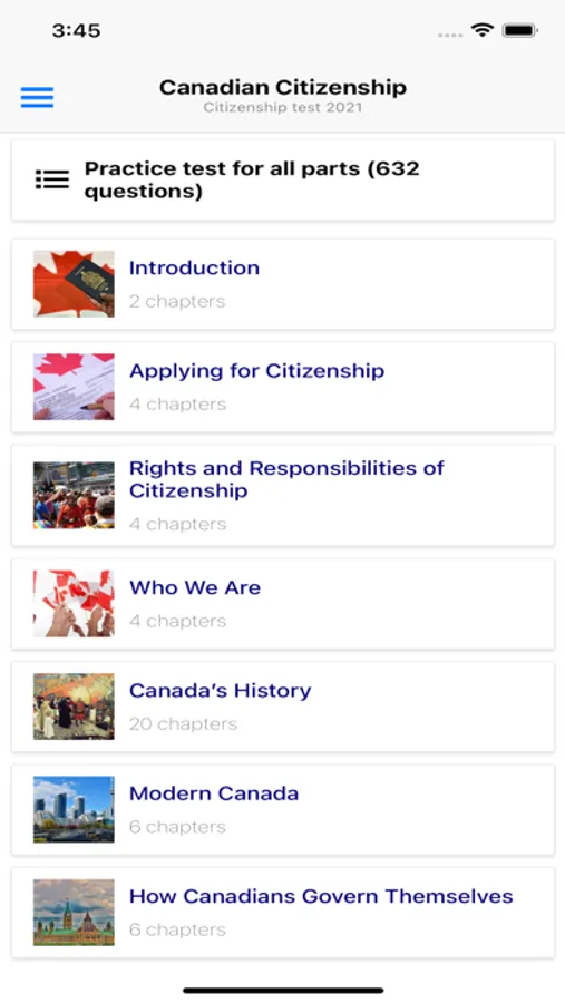 The is the best app you can find for learning and practising for the Canadian Citizenship test in 2021. It contains all the necessary materials to pass the test:
