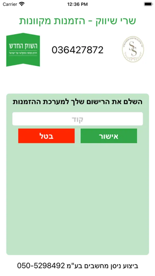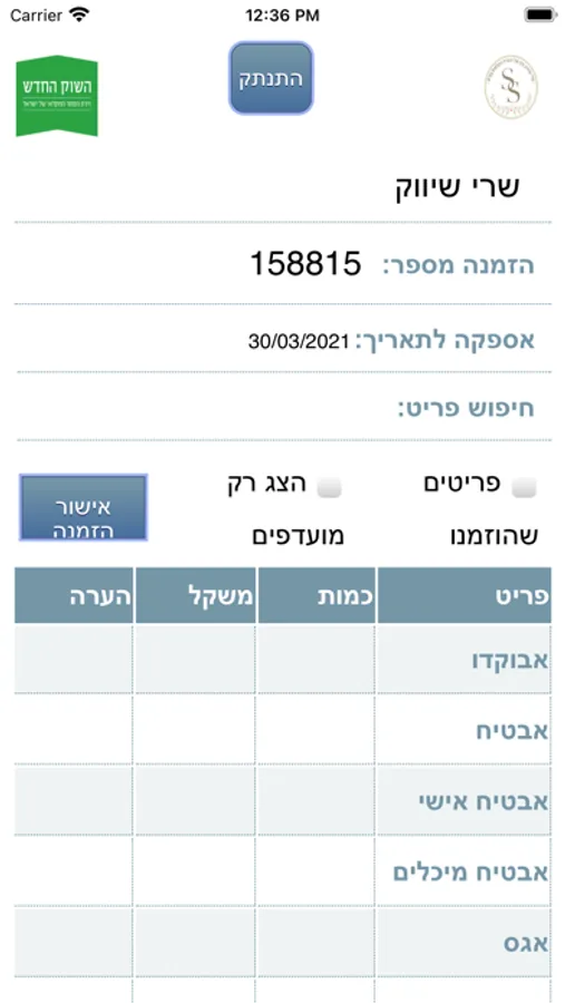אפליקציה להזמנות מקוונות של לקוחות שרי שיווק נכון תוצרת חקלאית בע"מ