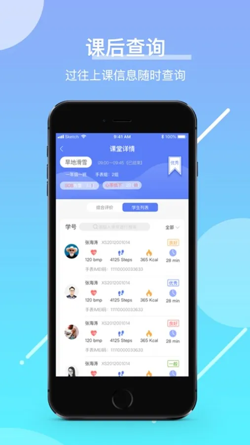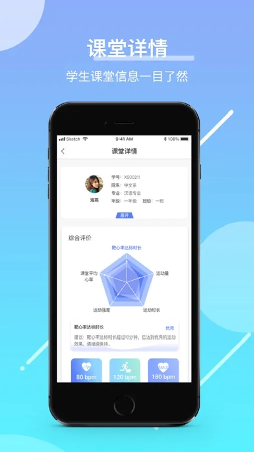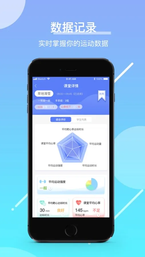 育能智慧操场单机版APP为教师管理端,平台运用体征传感设备为教师远程提供学生实时体征数据,保证训练科学性。并采集记录了学生日常体育参与情况,对参与质量提供评估数据,以及提供个性化解决方案。