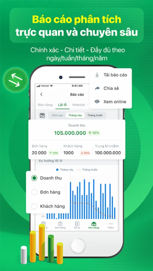 5. Báo cáo doanh thu, lợi nhuận chính xác: Hệ thống tự động báo cáo doanh thu, lãi lỗ theo ngày, tháng giúp bạn theo dõi tài chính kinh doanh hiệu quả, dễ dàng.