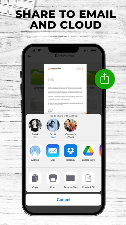 - Share scanned files with your contacts