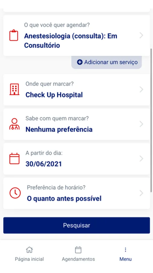 Funcionalidades: agendamento, remarcação de consultas e resultado de exames.