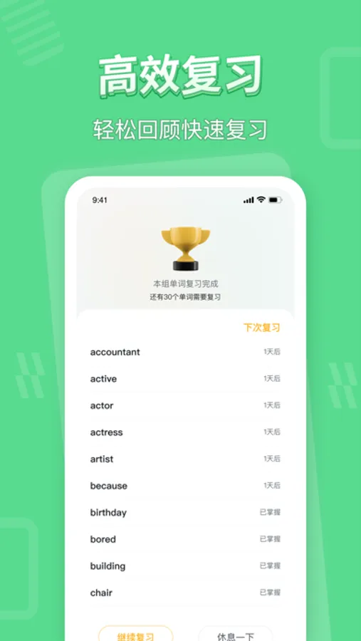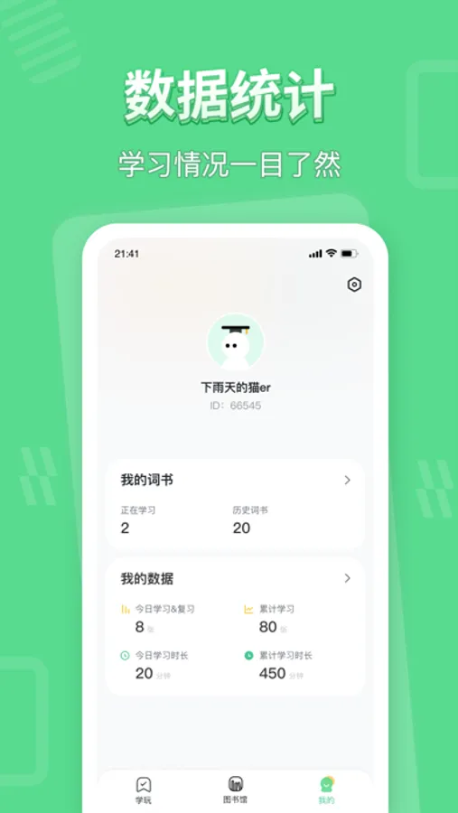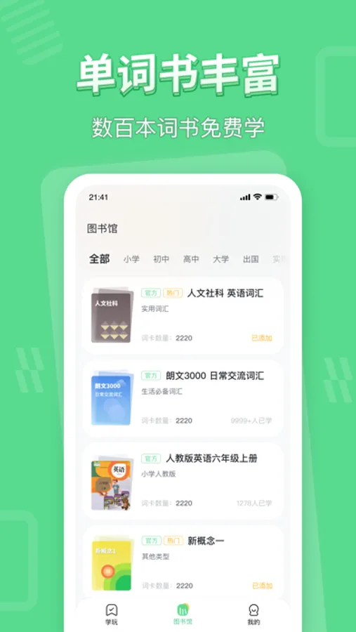在海量词书学习的场景中,词义和用法被精准呈现,智能记忆算法,让你真正科学高效地掌握单词。