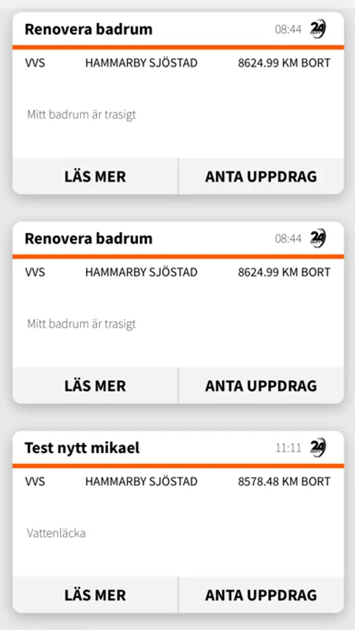 24 Duty är snabbaste vägen till din lokala hantverkare. På bara 1 minut får du svar och sedan är vi på plats inom 60-90 minuter. Vi finns i Stockholm Göteborg och Malmö men rullar löpande ut nya städer och stadsdelar. Ta en titt i appen för aktuella leveransområden.