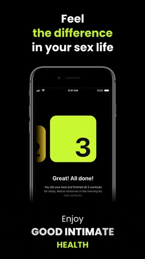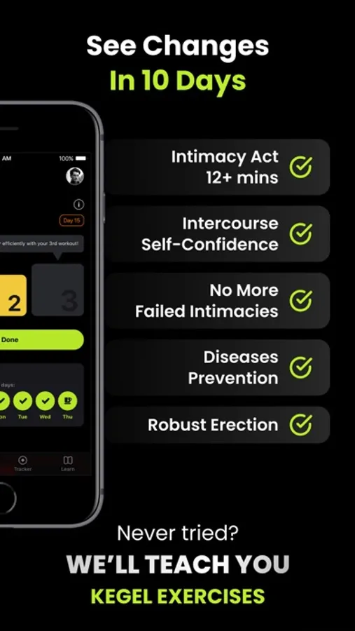 – Choose your goal and start doing kegel workouts daily. Experience the first results in just 10 days!