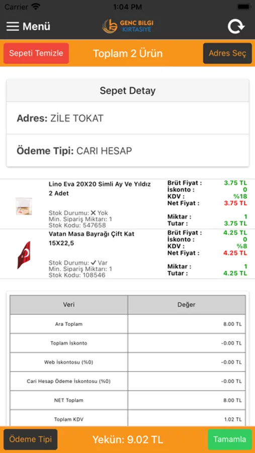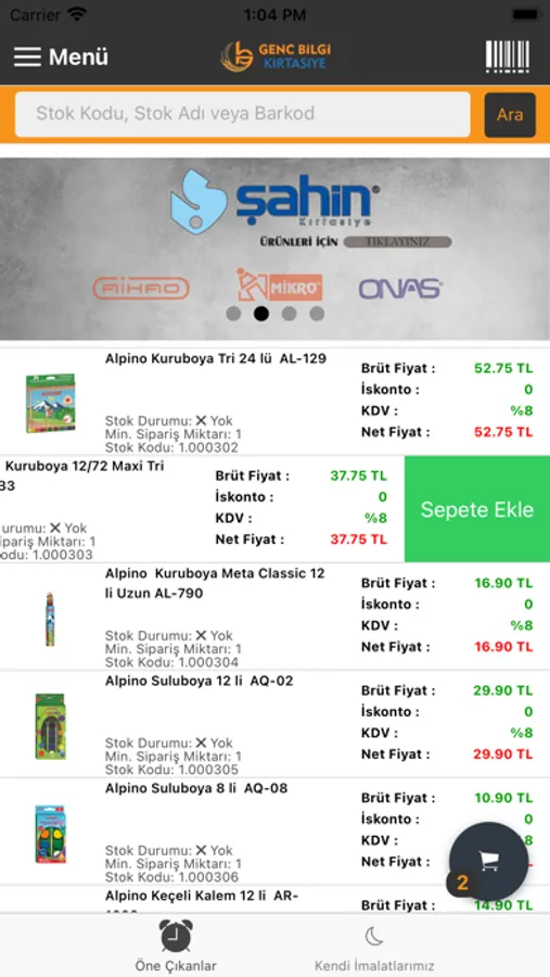 Genç Bilgi Kırtasiye B2B Sisteminin Mobil Uygulaması.