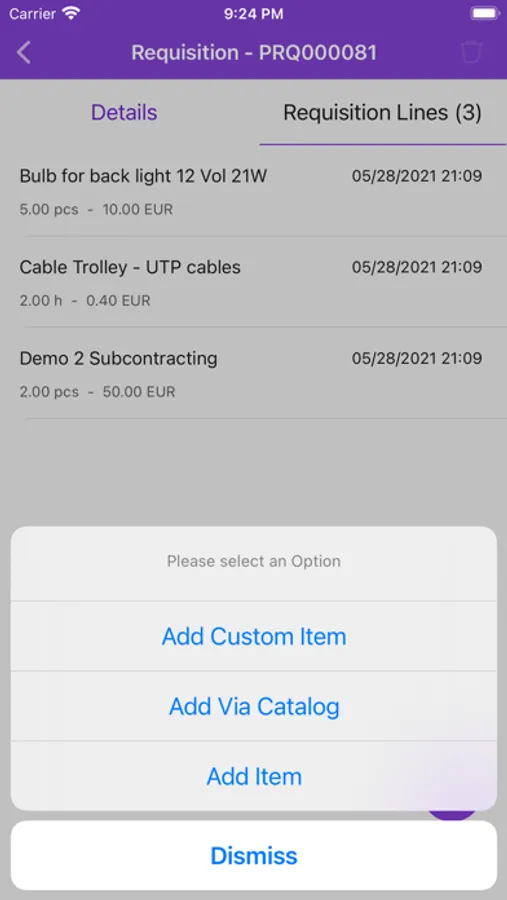 The Infor LN Requisition App provides user the ability to create Requisitions. The created Requisitions can be submitted and sent to the backend LN. User can either create new template with items or save a Template from already created Requisition. Templates are useful when user wants to create same requisitions often. Further processing of the Requisition after submission will be done in the LN.