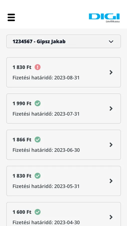 A DIGI ügyfélkapun lehetősége van szerződése adatainak karbantartására, számláinak nyomonkövetésére. Megtekintheti számlájának részleteit, beállíthatja és kezelheti egyéb szolgáltatásait.