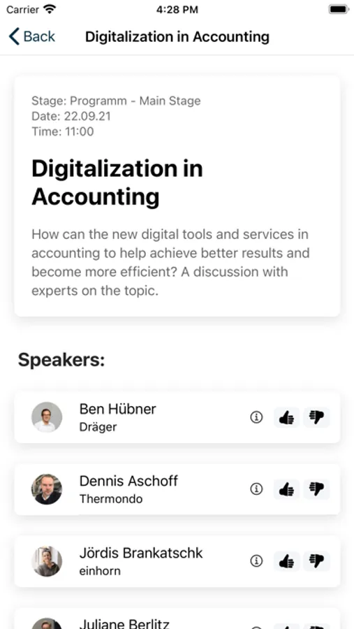 Mit der Accounting Summit App können Sie bequem mit den anderen Teilnehmern des Accounting Summit chatten. Außerdem haben Sie mit der App Zugriff auf das Programm, Anfahrtsbeschreibung und die Abstimmung über die besten Redner für den Accounting Summit Speaker Award.