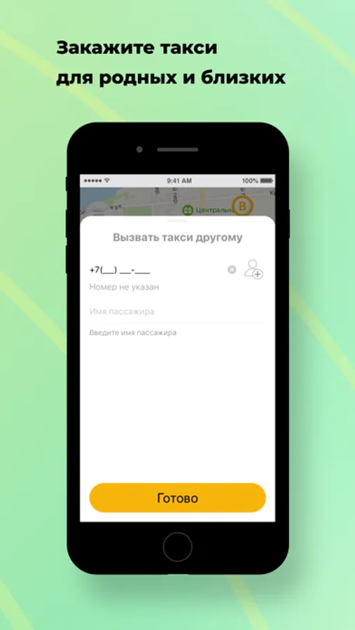 Используйте опцию “Вызвать такси другому” в разделе “Пожелания” и укажите его номер телефона. Когда такси подъедет, на указанный номер придет СМС, а вам — сообщение в приложении.