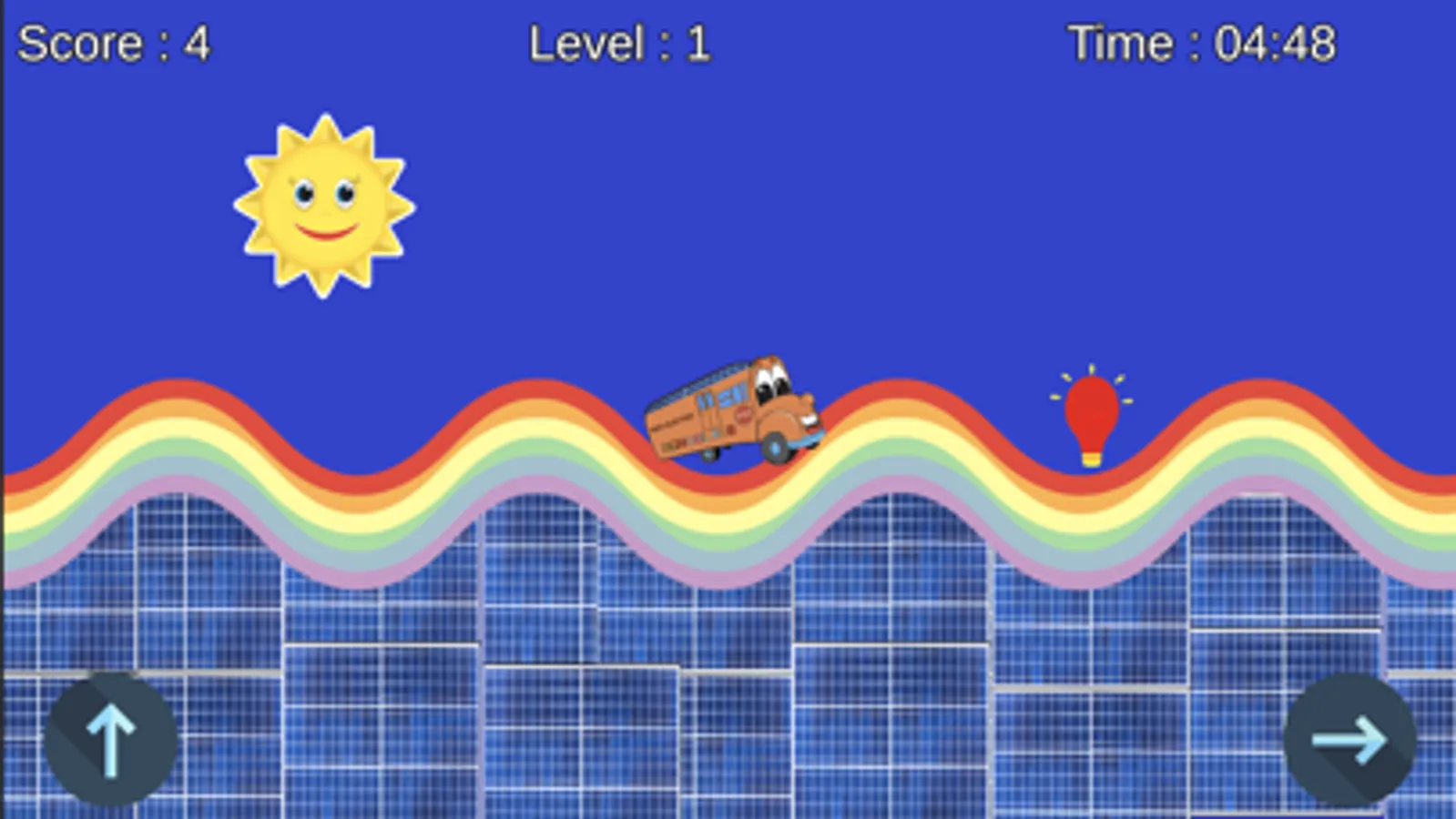 First few screen of presentation about bus and then in game play of 5 minutes user can press arrow key to move bus forward direction