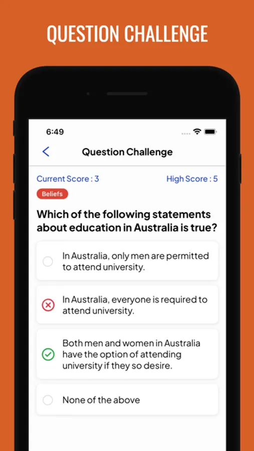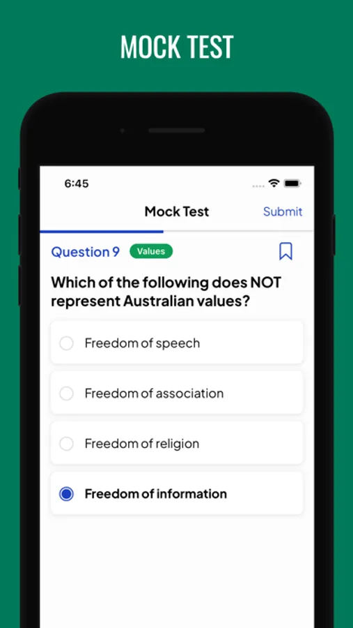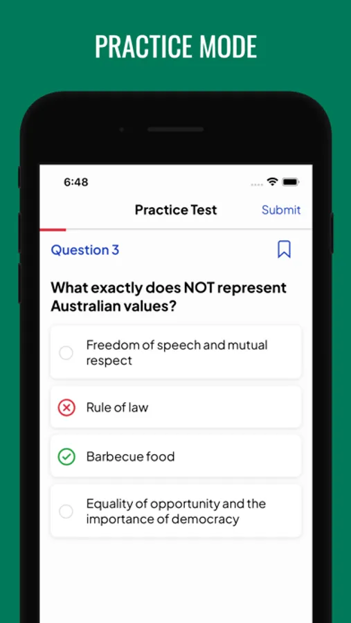 Use this app to prepare and practice for the questions based on Australian Values. AU Citizenship Test - Our Common Bond has four different categories of questions.