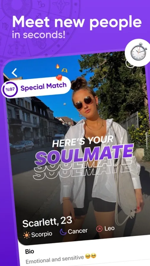 Unleash the power of the stars and ignite your love life with Karma, the ultimate dating app that dives deep into astrological compatibility. It's time to go beyond the surface and explore the magic of cosmic connections.