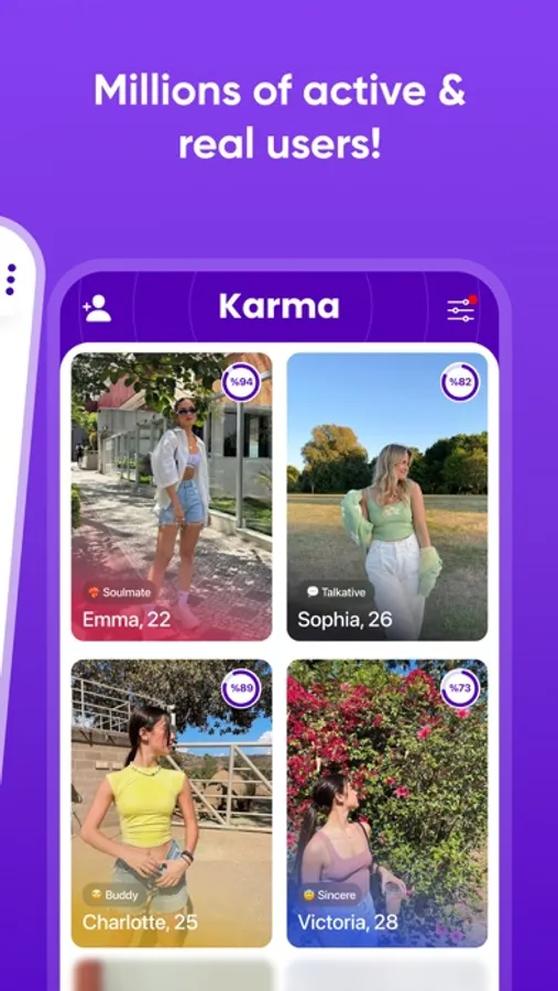 Are you ready to embark on a celestial journey to find your perfect match? With Karma, it's effortless. Connect with like-minded individuals, effortlessly match based on astrological compatibility, and dive into enlightening conversations.