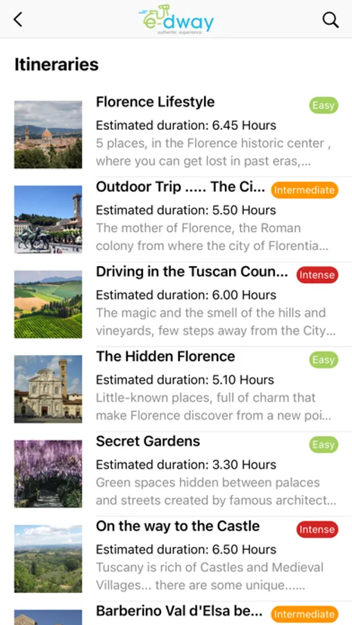 E-dway App ti permetterà di scoprire i Territori in completa autonomia immergendoti nei luoghi grazie a tutte le informazioni dettagliate presenti per ogni Punto d'interesse.