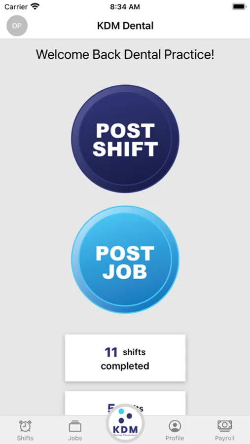 KDM Dental Placement is an Uber-style mobile app that instantly connects dental practices with dental professionals. Dental practices can post temp shifts and permanent jobs with the click of a button. Dental professionals get notified immediately when new temp shifts and permanent jobs become available and can apply instantly through the app. Our app eliminates the need for traditional agencies – no more back and forth phone calls or emails to book shifts.