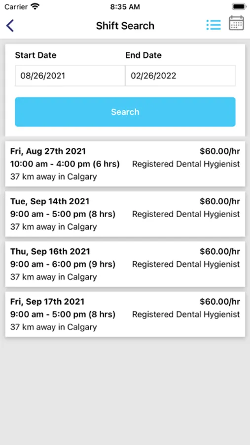 - Dental professionals can find and apply for the shifts they want by inputting their availability and filtering by distance and minimum hourly rate