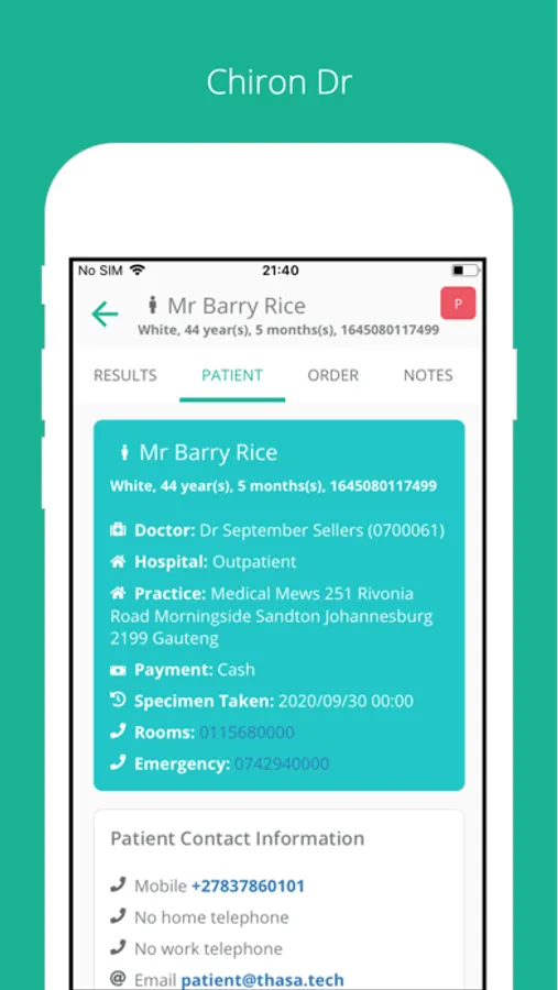 Chiron Dr connects clinicians directly to pathology laboratories which run Chiron LIMS. It delivers results in realtime, allows Dr's to view cumulative results for repeat and chronic patients, download reports and view patient data.