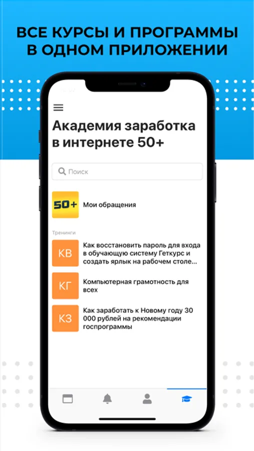 Все услуги и обучающие материалы в одном удобном приложении 50+