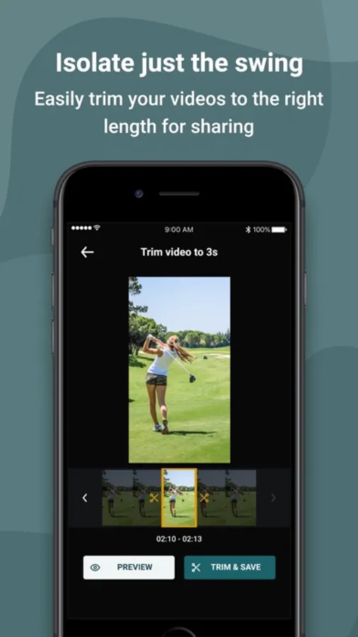 * You can record your swing, trim it to the perfect length with ease and submit it to our AI coaching system for review or share it with your friends and family to show off.