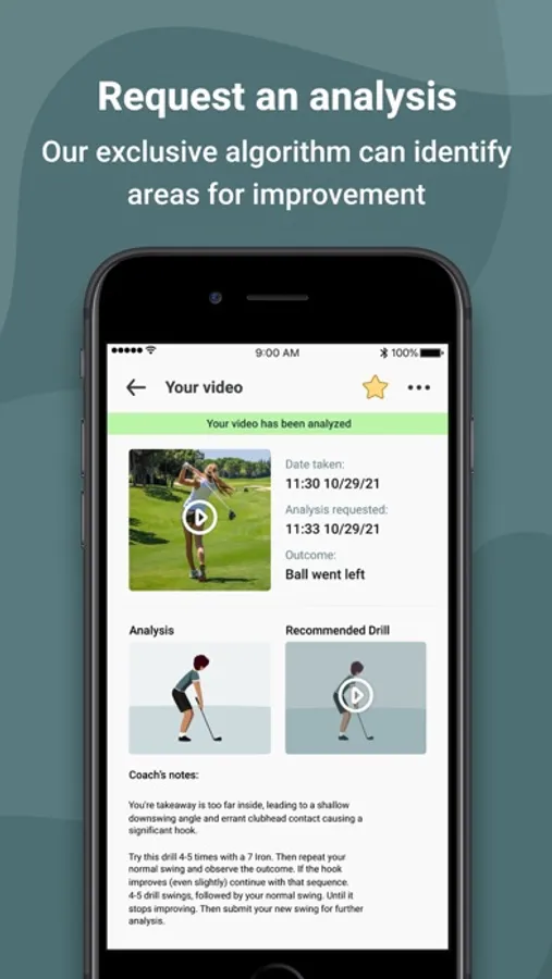 * Practice your drills, resubmit a video for another analysis and our coaching system will work with you to continually refine your swing.