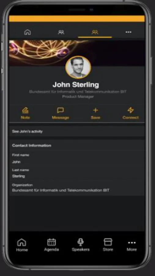 - Connect with other participants, exchange digital business cards and in-app messages.