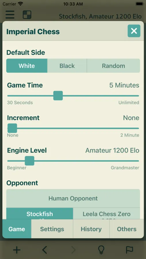 You can customize your opponent's playing style by adjusting various options like engine strength, move time and increment, opening books variations.