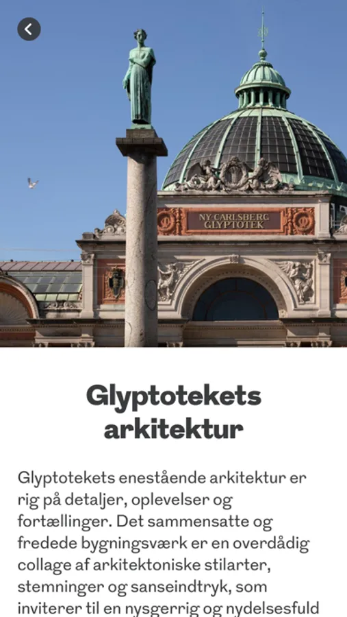 Glyptoteket tilbyder spændende indhold. Som besøgende kan du læse mere omkring stederne eller lytte til lydguides. Hvis du besøger os sammen med andre kan du benytte dig af Samlyt, som sørger for at du kan lytte til lydguides samtidig.