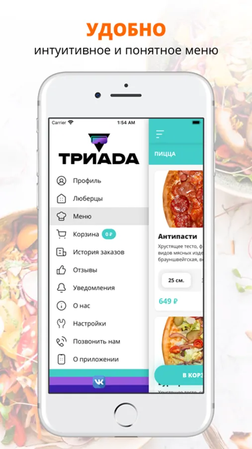 посмотреть меню и совершить онлайн-заказ,