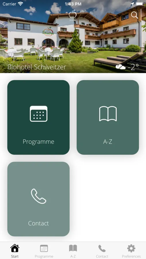 The Biohotel Schweitzer app accompanies you during your stay and informs you about current offers or courses and gives you further helpful tips. With the app you have quick and mobile access to all information about the Biohotel Schweitzer.