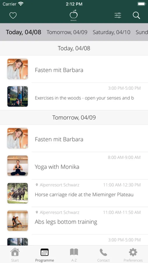 You can easily organize your holiday with the Biohotel Schweitzer app. Secure your participation in exciting courses and activities.