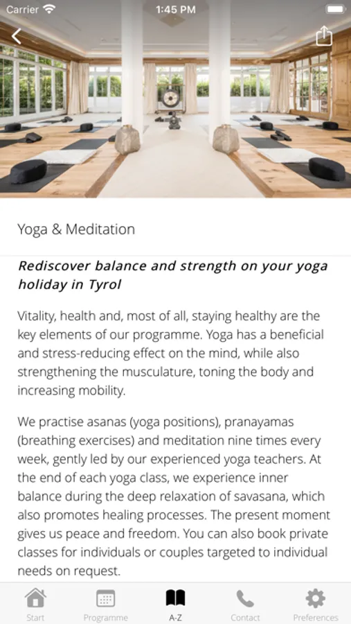 Filter by different interests such as wellness, yoga, golf, fasting or cuisine and put together your own programme. In this way, the Biohotel Schweitzer app offers content tailored to your personal needs.
