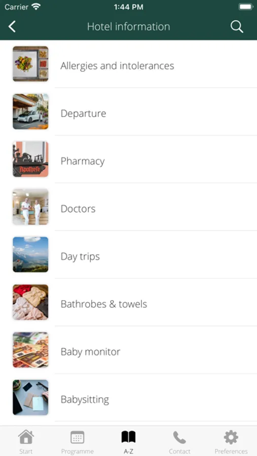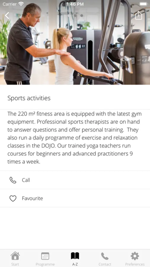 Important standard information such as location and directions as well as opening hours of the restaurant, wellness area and reception are prepared for you in the app.