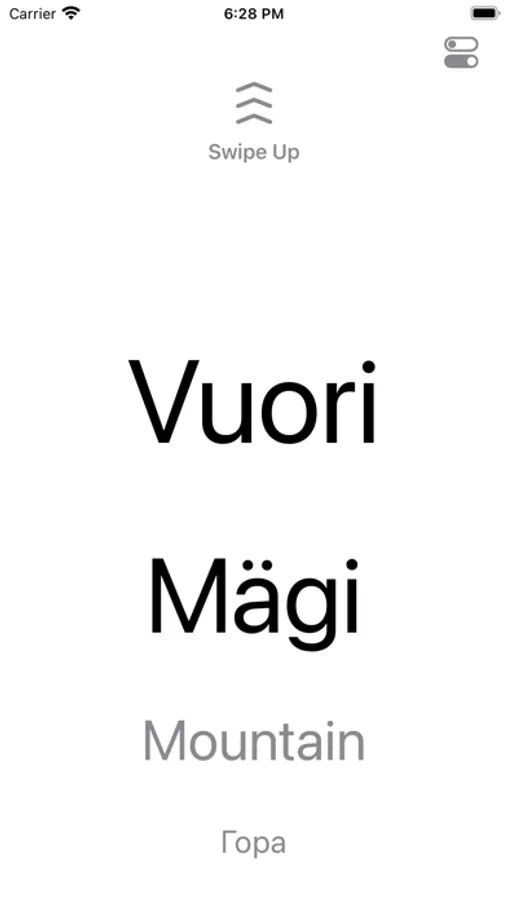 Swipe up to get a new word. Tap to word for hear pronunciation.