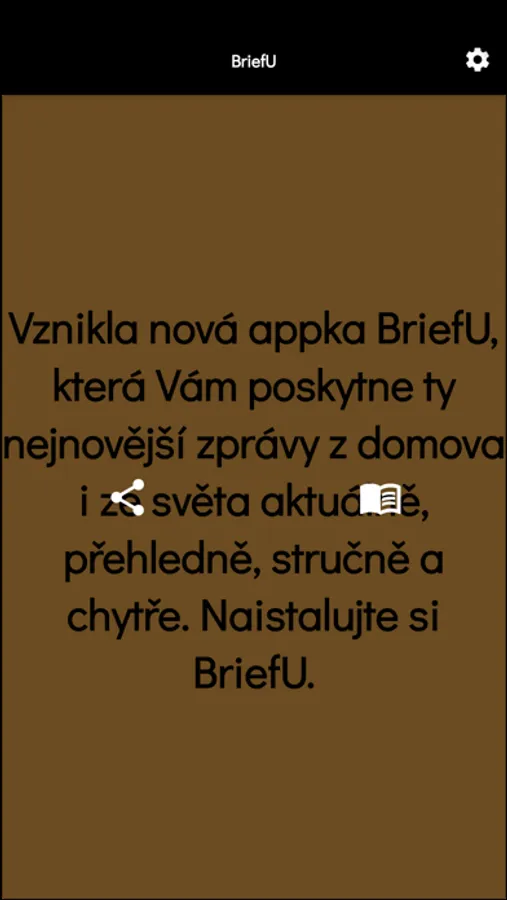 BriefU je appka, která to nejdůležitější z domova a ze světa shrne do pár vzkazů. Jak to funguje? Otevřeš appku a přečteš si nejnovější zprávy. Jednu po druhé. Přečteš, swajpneš a čteš další. A co víc, swajpneš doprava, když je zpráva pro tebe dobrá, swajpneš doleva, když tě nepotěší. Zprávy můžeš i sdílet a když tě zaujmout, pročíst si víc info.