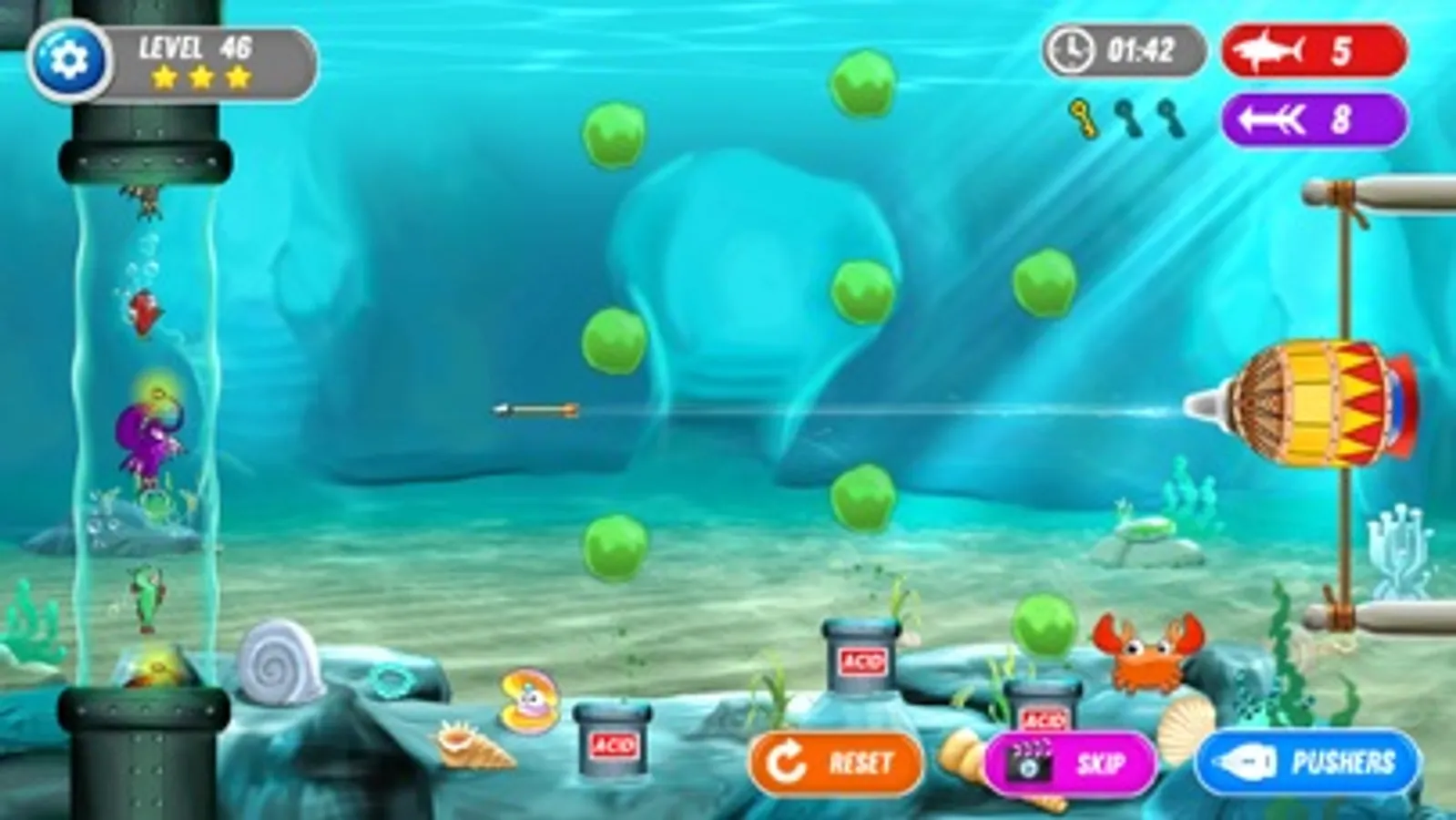 In Save The Fish - Arrow Pusher you’ll always face new challenges. Play matches to increase your level and get access to new locations, where you’ll compete to save the fish from different creatures , obstacles ! All you got to do is just aim and pull the arrow . Lets see who becomes the Archery Master and Save the Fish .