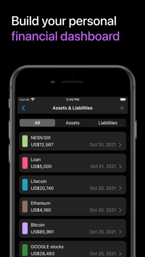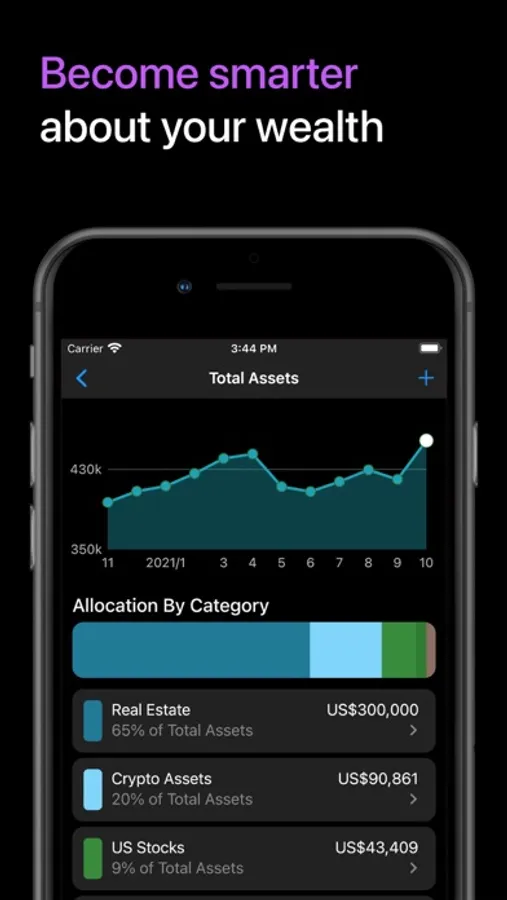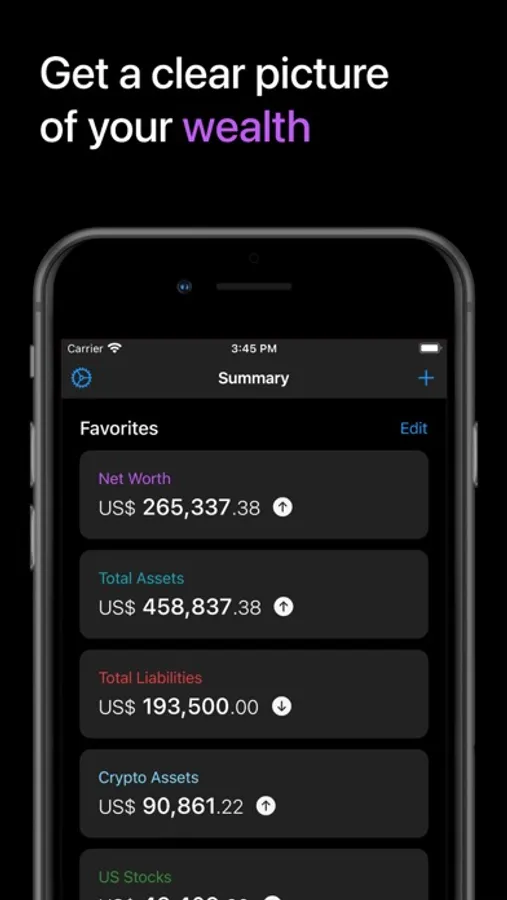 Sumio simplifies the process of organizing and tracking the value of your assets and liabilities. Whether it's stocks, cryptocurrencies, or your retirement savings, Sumio's intuitive interface allows you to monitor your financial health effortlessly. With automatic calculations of key financial metrics such as Net Worth, Total Assets, and Total Liabilities, you'll always have a clear picture of your financial standing.