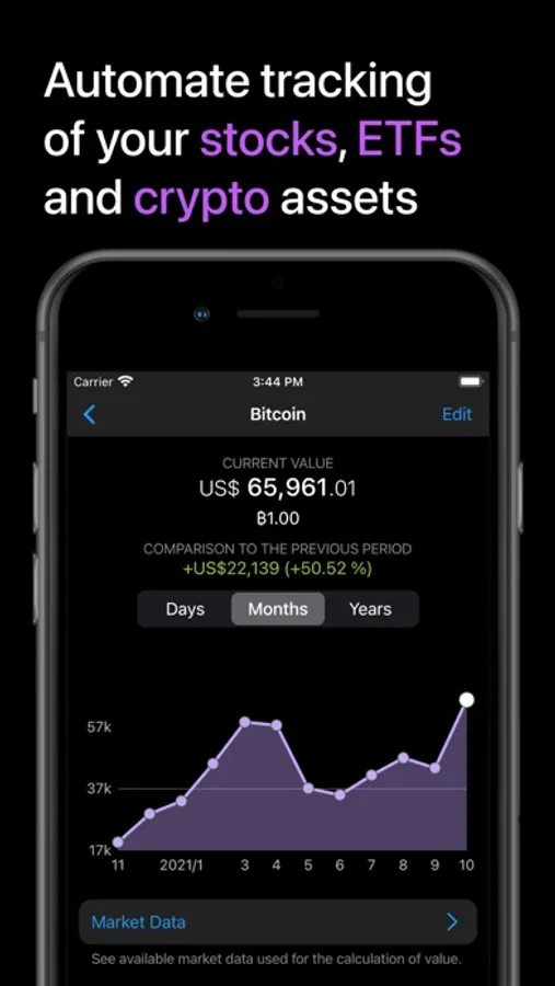 Stay ahead of the game with Sumio's automatic market updates. Get market value updates for stocks, ETFs, cryptocurrencies, and precious metals. With market data from US and global exchanges, you'll never miss out on important investment opportunities. Analyze your assets and liabilities using interactive charts and gain valuable insights into your portfolio's performance.