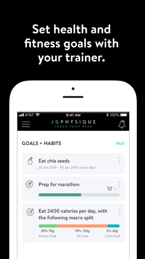 With the JG Physique App, you can start tracking your workouts and meals, measuring results, and achieving your fitness goals, all with the help of your coach.