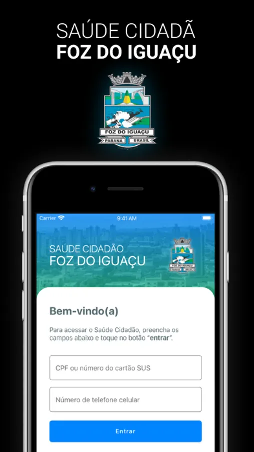 01. Caso não possua cadastro, será necessário realizar em uma Unidade de Saúde para utilização do aplicativo.