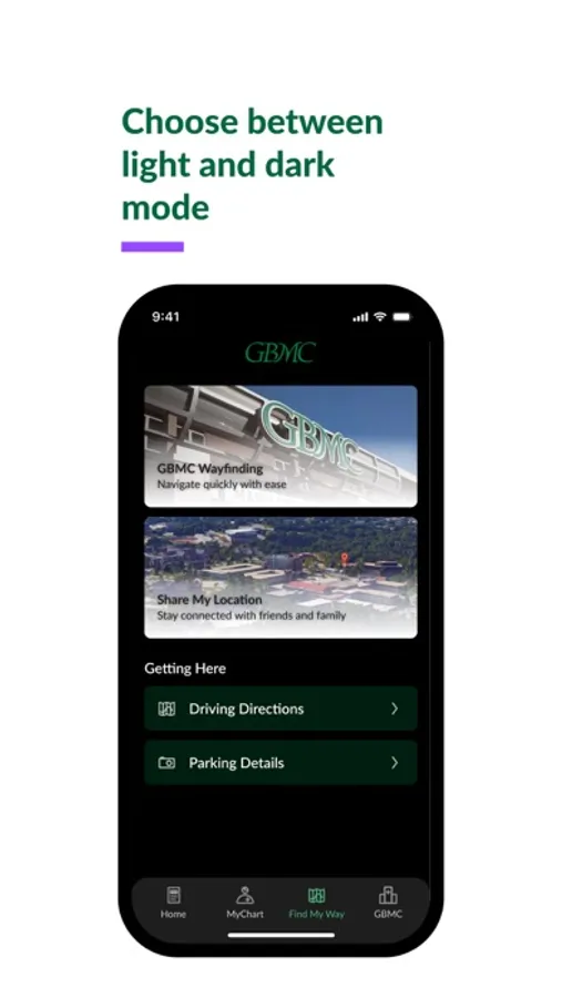 The GBMC HealthCare app is designed to help patients and their loved ones navigate our healthcare system with ease. It includes GPS wayfinding, directing you from home to the proper parking garage on GBMC's campus. Once you arrive, the app offers step-by-step directions to help you find your exact appointment location.