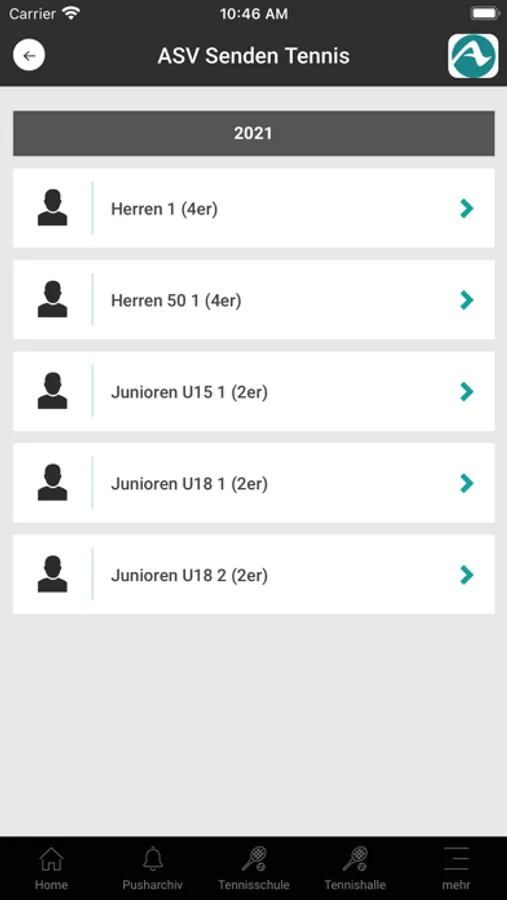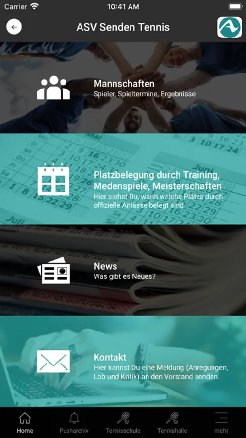 In der ASV Senden Tennis App findest Du folgende Informationen:
