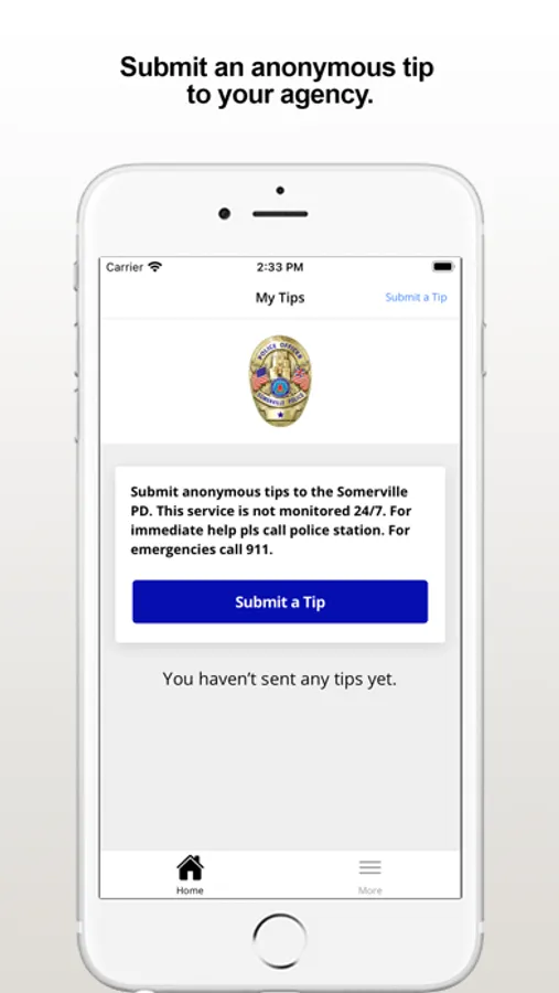 The Somerville PD app provides citizens the ability to submit anonymous tips to the Somerville, MA Police Department. The app also displays organization web and social media content.