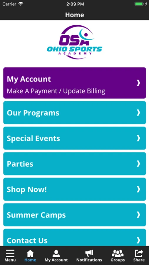 The Ohio Sports Academy app allows you to manage your account with ease, register for classes, parties, and special events. You'll also receive important notifications about class changes, closings, registration openings, special announcements, and upcoming events.