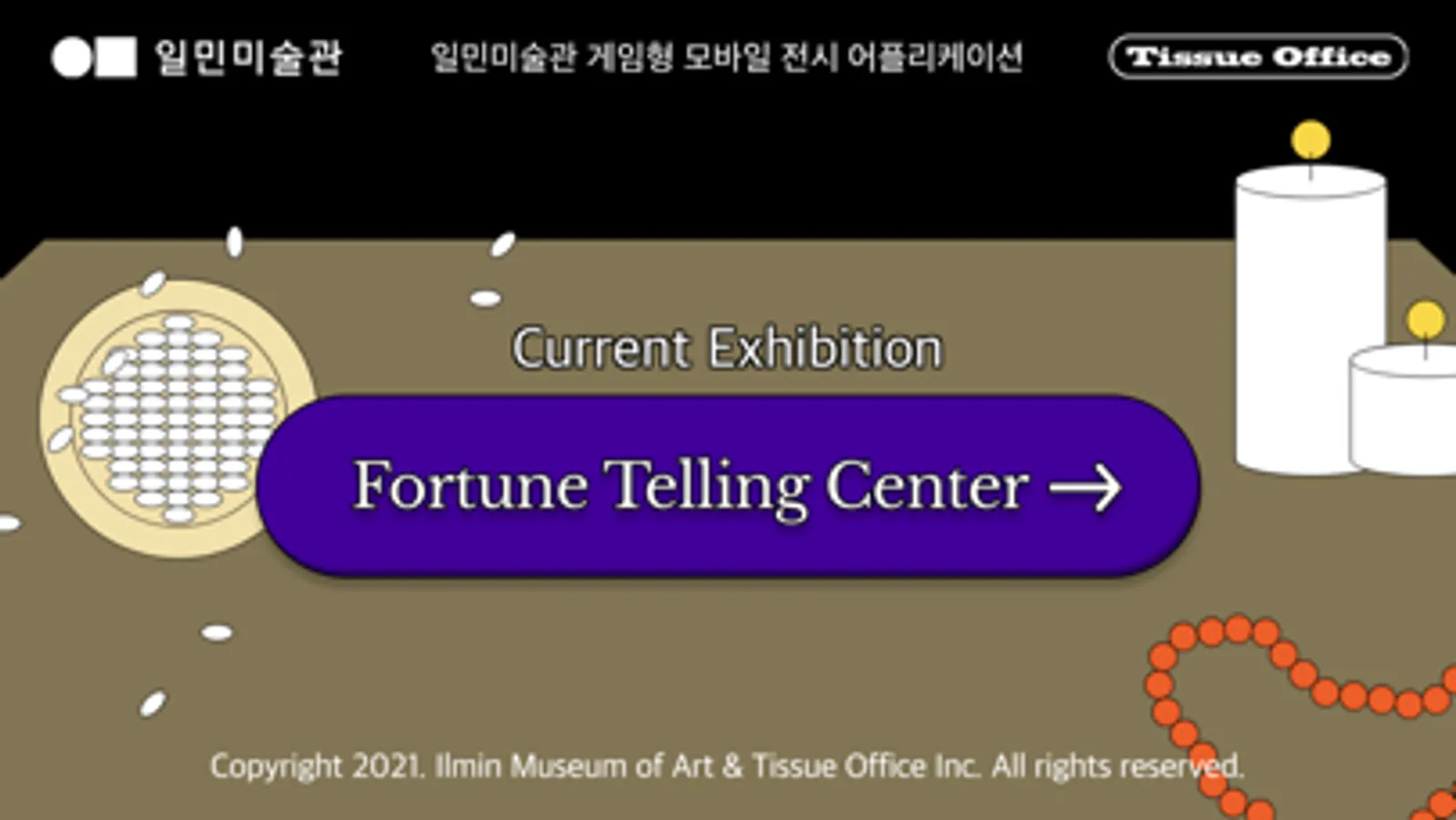 ※ This application ‘Fortune Telling Center’ is a game-based mobile exhibition that provides content related to the planned exhibition of Ilmin Museum of Art. The game 「Fortune Telling Center」 is based on Ilmin Museum of Art’s planned exhibition Fortune Telling, reinterpreted and produced by game publisher Tissue Office.